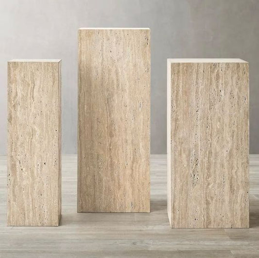 JUEGO 3 PEDESTALES DECORATIVOS TRAVERTINO