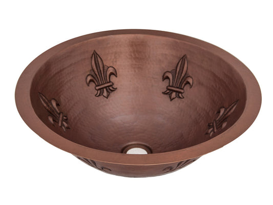 Premium Lavabo Redondo en Cobre con Diseño Flor de Lis