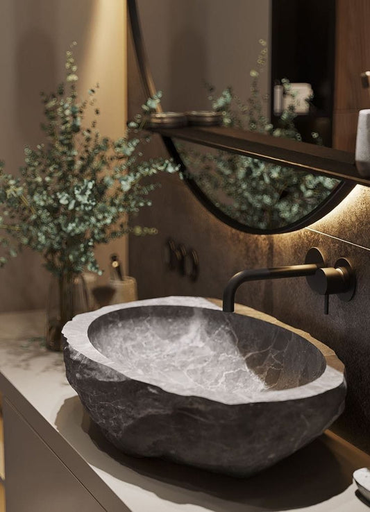 Una colección que combina la pureza de las piedras con el flujo natural del agua, creando espacios de baño elegantes y atemporales donde el diseño se encuentra con la serenidad.